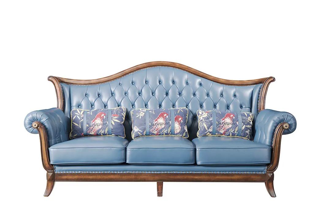 沙发内置高密度海绵,高回弹更舒适,加厚坐包,柔软舒适不坍塌,经久耐用,整体外框采用流线型的设计,结合宽大的扶手,体现了美式家具独有的气质。