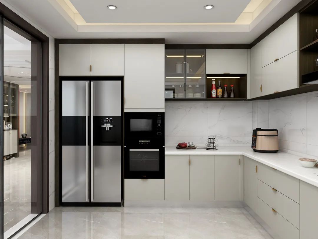厨房以自然简约的高级色调塑造出时尚的效果,
