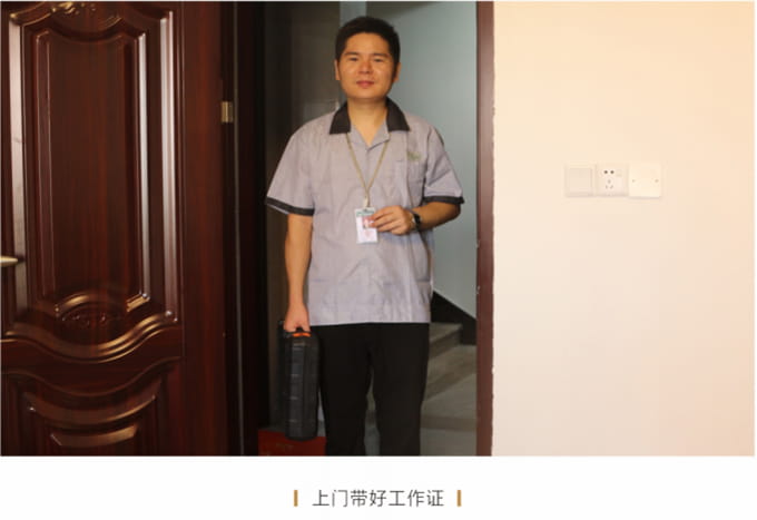 必须按照客户约定,至少提前5分钟上门,见到客户时需自我介绍,并出示上岗证和名片,在进入顾客家前应穿上自备的鞋套。征得客户同意后开始维修,严禁乱收费。